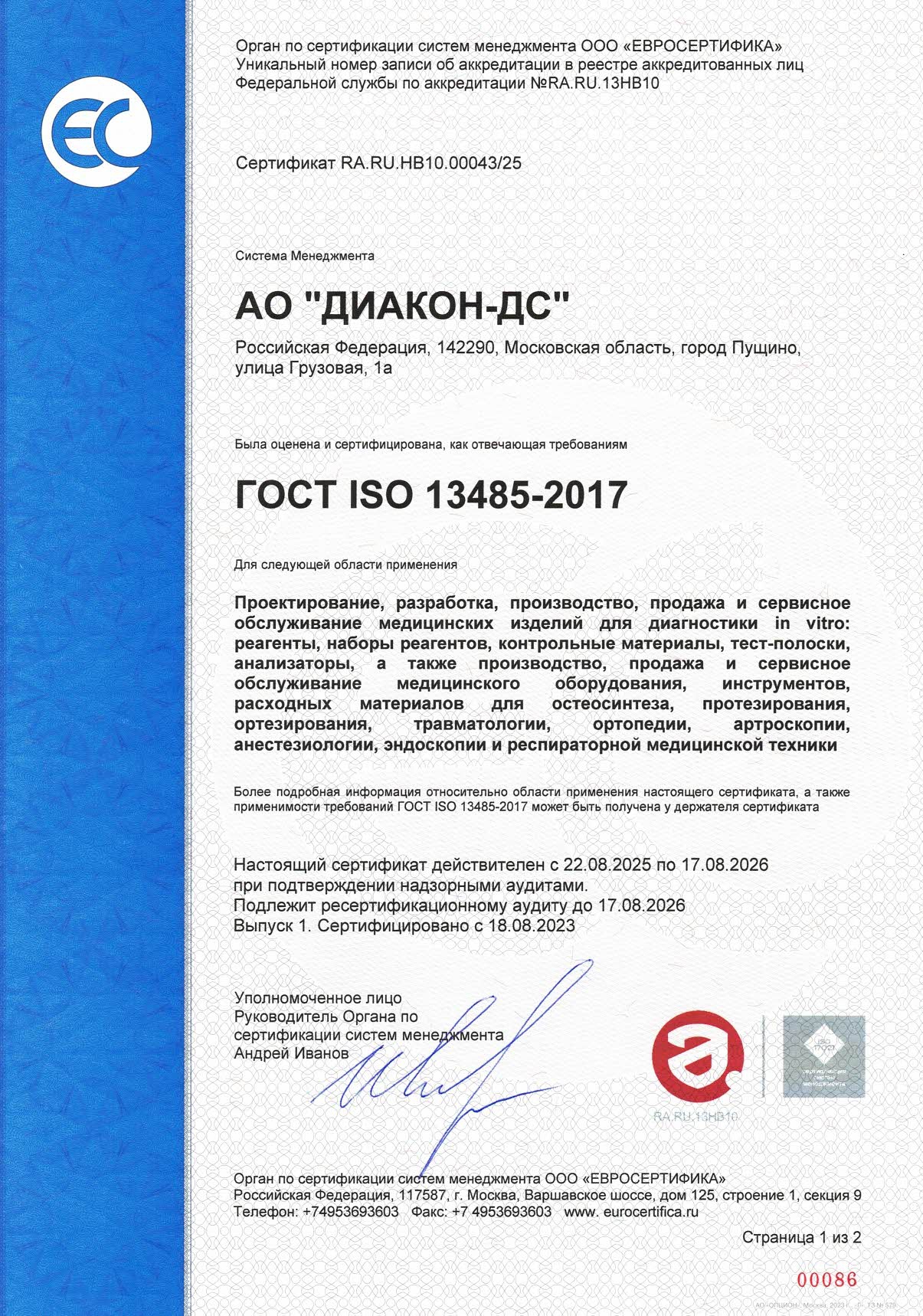 ДИАКОН получил Регистрационное удостоверение №РЗН 2022/18412 на «Экспресс-тест для количественного о...